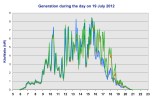 This chart, also from July 2012, shows how output can be affected on days with passing cloud cover. 133 units were still generated on this day.