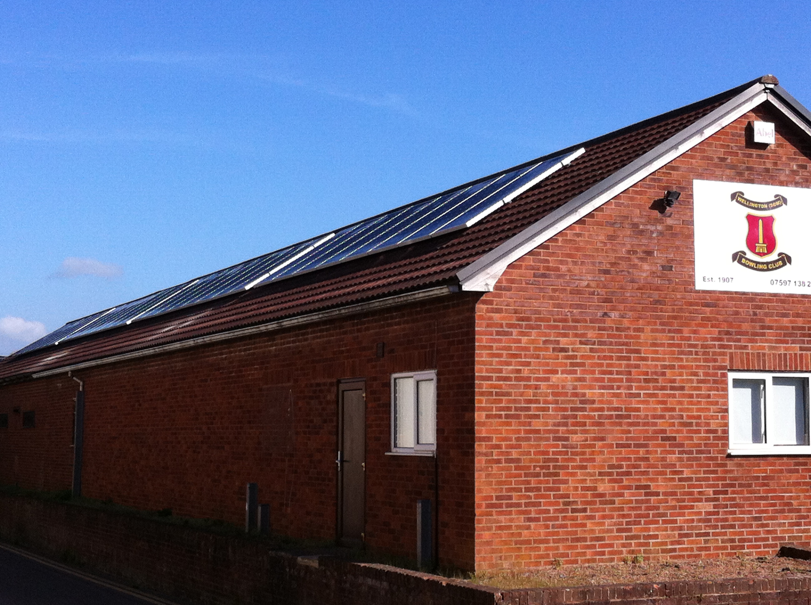 Brendon Energy’s 6th power station was completed in April 2015 – a roof mounted solar pv unit on Wellington Bowls Club. The installation was carried out by EcoExmoor. The Bowls Club will benefit from the free electricity generated by the panels and part of the Feed in Tariff money will be ploughed back in to the local community.